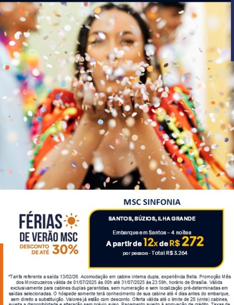 Consultar Cruzeiros MSC: 3 e + noites, a partir de R$ 1.493- x /p