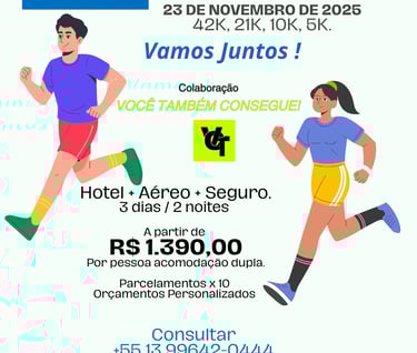 - Pacotes completos: passagem aérea, hospedagem, traslados, inscrição na prova e suporte local.