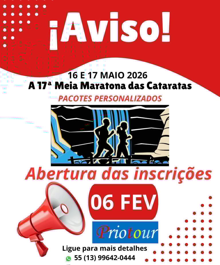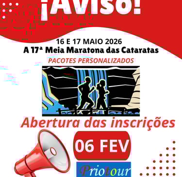 A 17ª Meia Maratona das Cataratas 2026, com inscrições a partir de 6 de fevereiro de 2026.