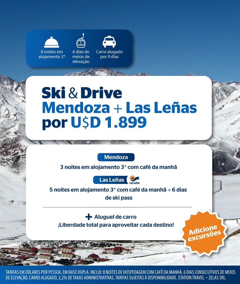 Ski/Neve-Montanha-Aventura-Lazer Tudo isso e muito mais você encontra na Patagônia e no Noroeste Argentino.